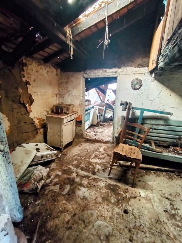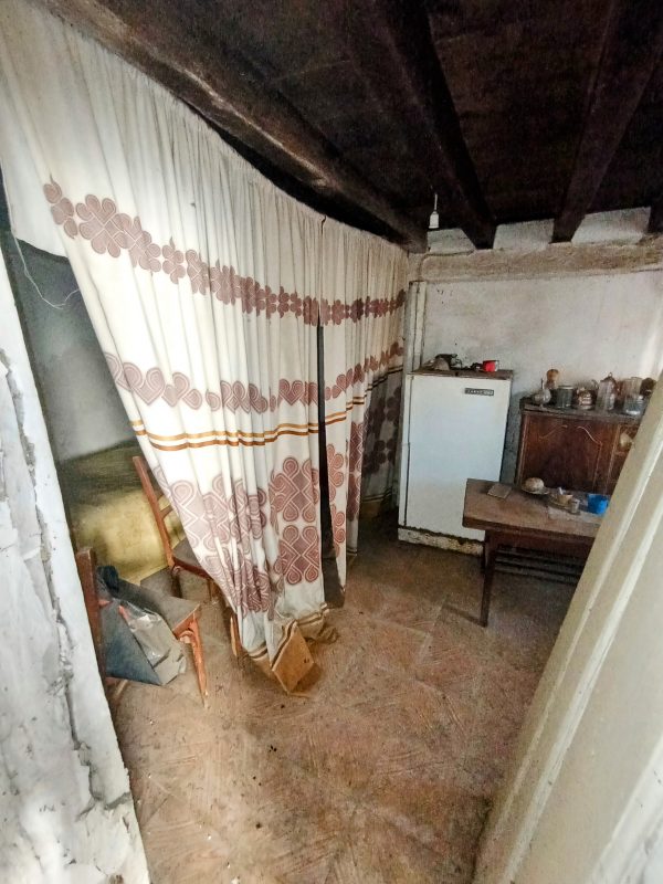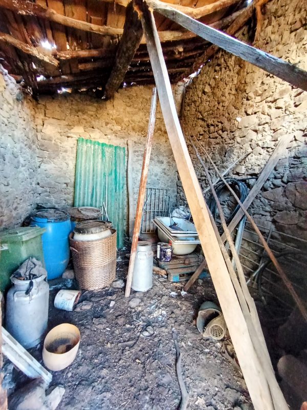 Se compone de una vivienda de planta baja con desván, de unos 100 m2 construidos, distribuidos en recibidor, cocina con chimenea, habitación y almacén. También dispone de desván en la planta superior, todo diáfano, con techos y suelos de madera. Dispone de dos antiguas cuadras de piedra, conectadas con la vivienda por un patio de unos 68 m2.