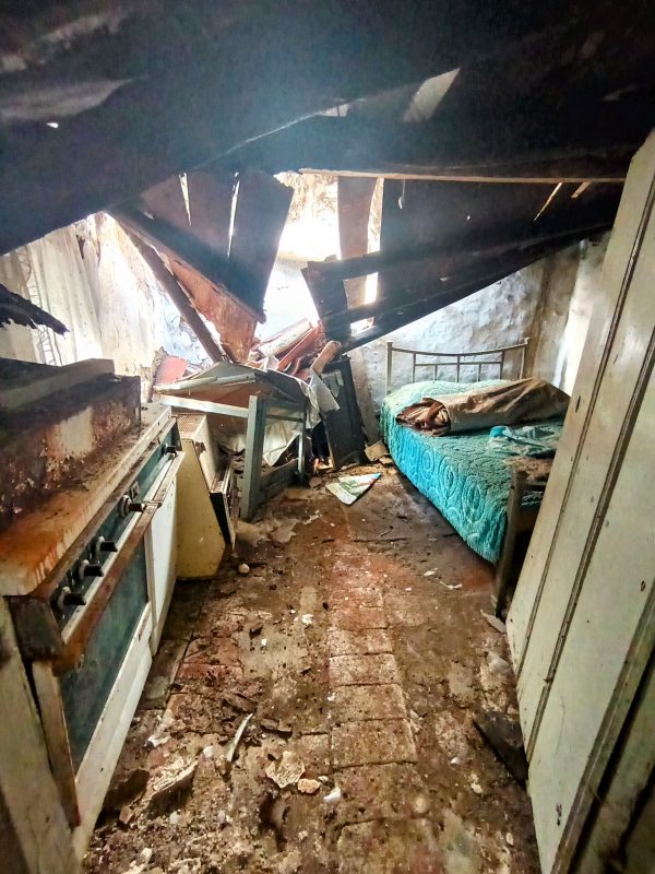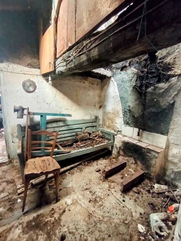 Cuenta con dos accesos, a dos calles diferentes. Una para la entrada peatonal y otra para la entrada de vehículos. Debido al paso del tiempo y a su desocupación desde años, la construcción se ha ido progresivamente deteriorando hasta el punto de que el estado actual no es bueno. Requiere una intervención integral que permitiera recuperar el uso residencial.