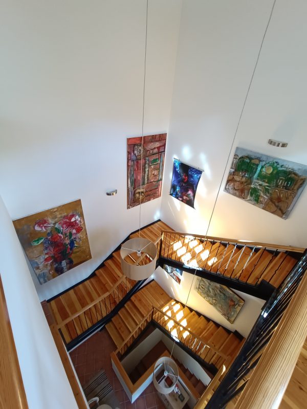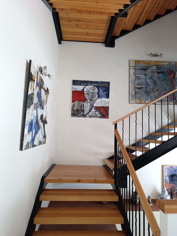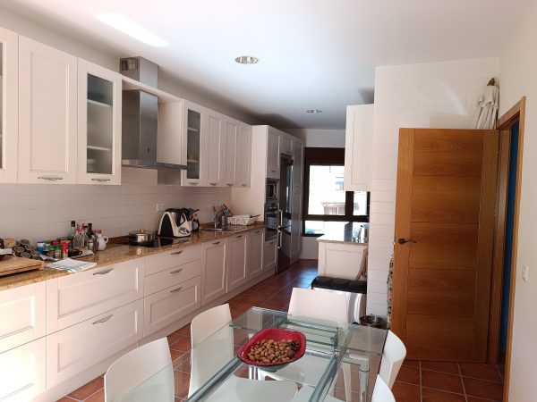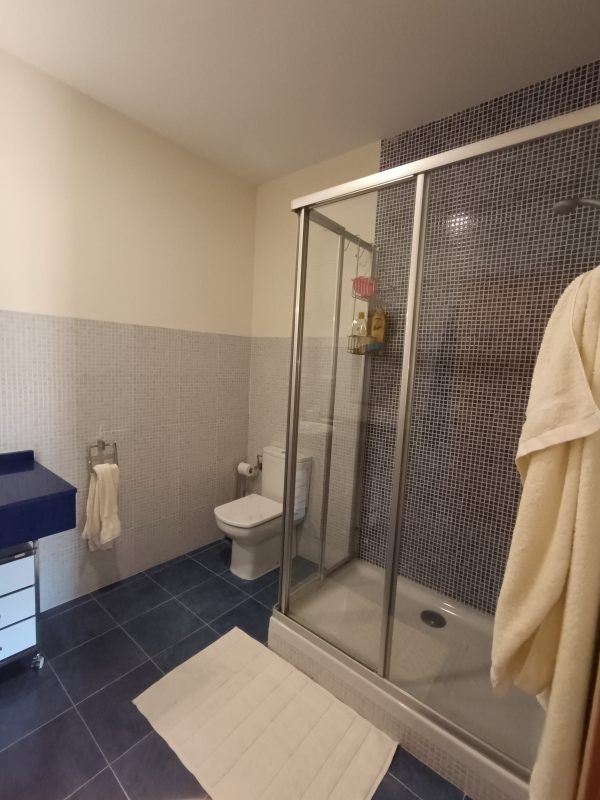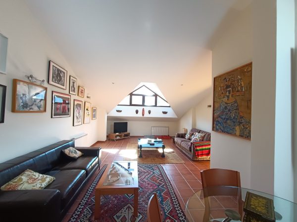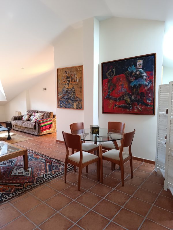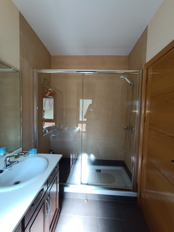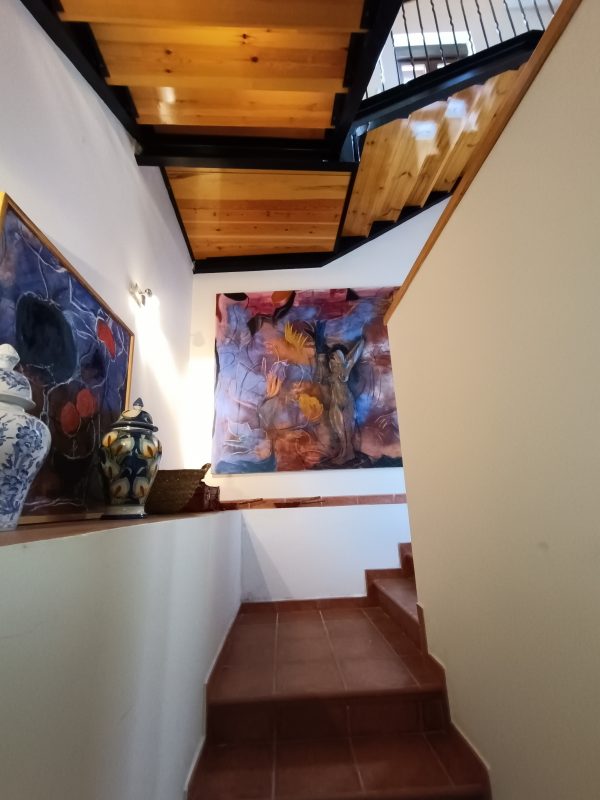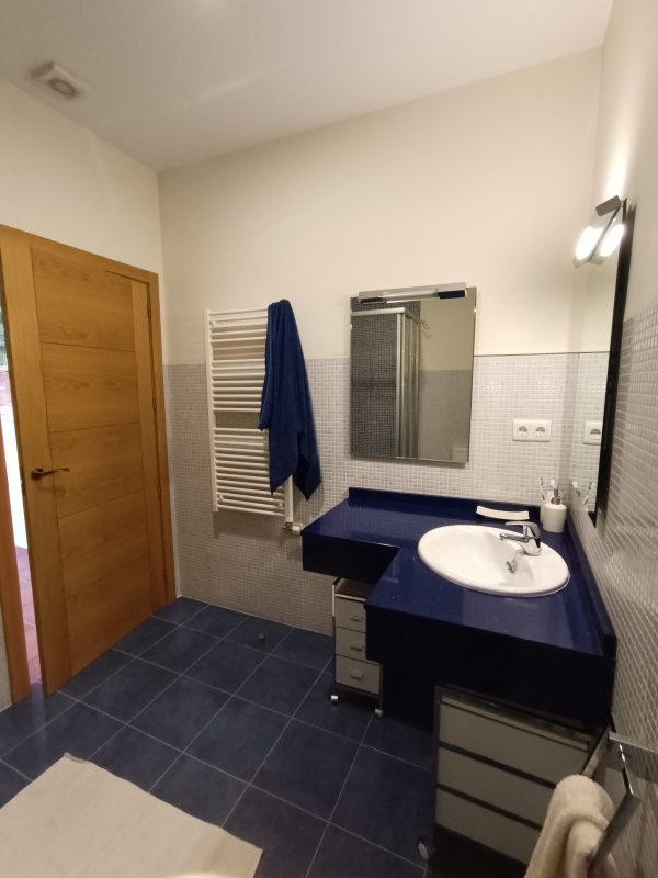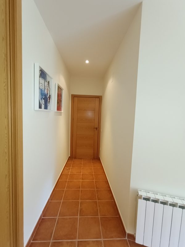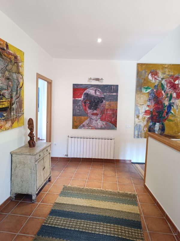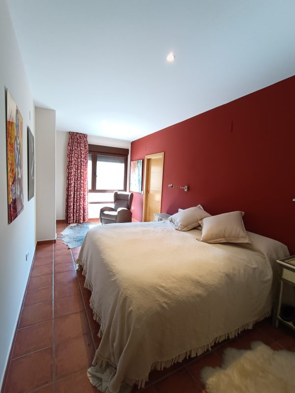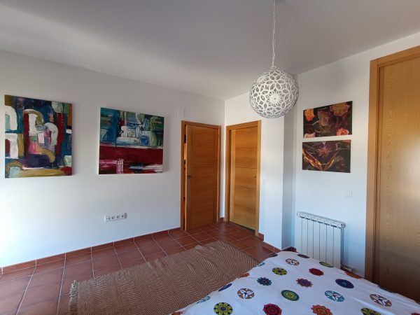 Se trata de una vivienda de 417 m2 construidos, divididos en dos plantas, una buhardilla y un garaje. En la planta baja (115 m2) se ubica la cocina independiente, equipada y con salida al patio, un amplio salón-comedor con chimenea de casette (y salida al patio) y un aseo. El patio tiene una superficie de 43 m2, se encuentra solado y dispone de horno de leña. En la primera planta (118 m2), se ubican los 3 dormitorios (uno de ellos con vestidor). Cada uno de ellos tiene armario empotrado y cuarto de baño. La buhardilla (87 m2) se trata de un amplio espacio diáfano, como sala de estar, estudio, etc. Además, cuenta con cuarto de baño con bañera con preciosas vistas y un cuarto/almacén.