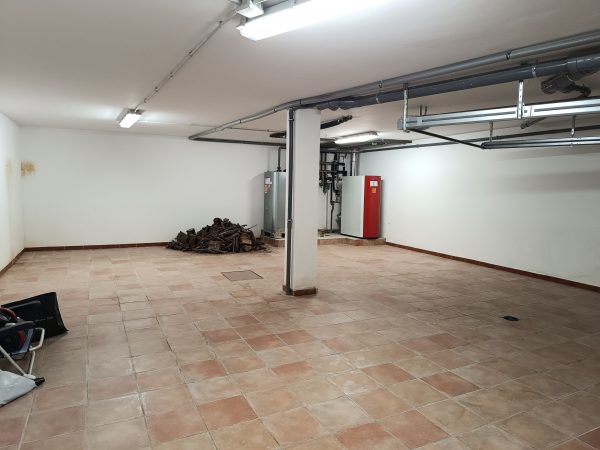 Dispone de garaje de 84 m2, en el sótano, en el que también se ubica la caldera y el depósito de gasoil. Se encuentra comunicado con la vivienda. Tiene la puerta automática y un almacén cerrado.