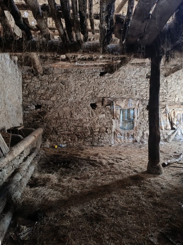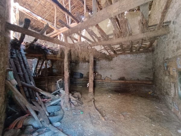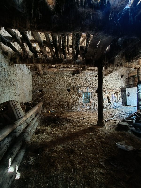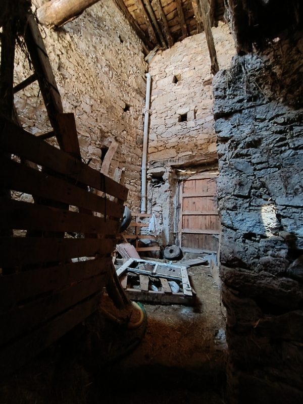 Se trata de un almacén o antigua cuadra para el ganado de 75 metros cuadrados construidos por planta (consta de dos plantas) y una zona exterior de unos 14 metros cuadrados en la parte trasera del mismo. Dispone de 2 accesos y luces a dos caras. Tiene las paredes de piedra, el suelo de tierra y el techo de madera.