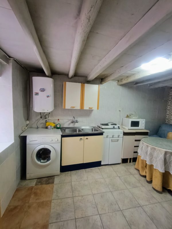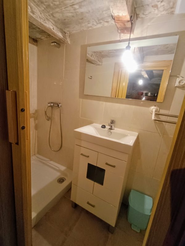 En la planta baja, los suelos de terrazo aportan frescura y durabilidad. Aquí encontramos una cocina funcional, una acogedora sala de estar ideal para reuniones familiares, un almacén que brinda espacio extra de almacenamiento y un cuarto de baño con ducha para mayor comodidad.