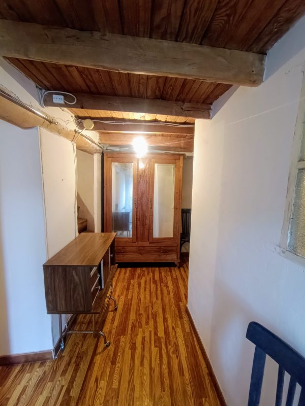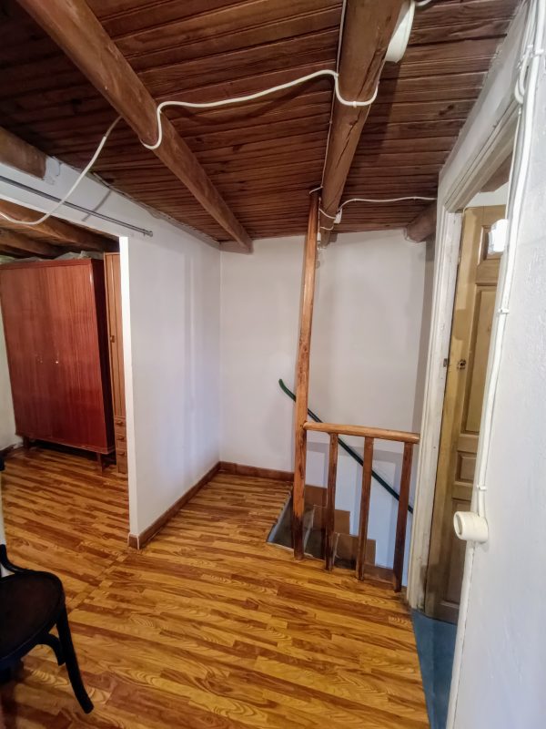 La planta superior, con suelos de madera que añaden calidez y encanto, alberga tres dormitorios. También en esta planta se encuentra un cuarto de baño adicional y el acceso al desván, un espacio versátil que puede aprovecharse como zona de almacenamiento, despacho o incluso un dormitorio extra con un poco de reforma.