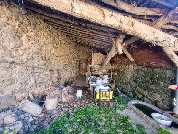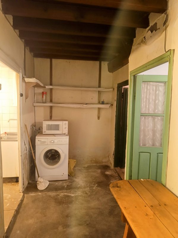 La casa mantiene elementos tradicionales como cerramientos y techos de madera, así como suelos de baldosa hidráulica. Requiere reforma, pero el tejado se encuentra en buen estado.