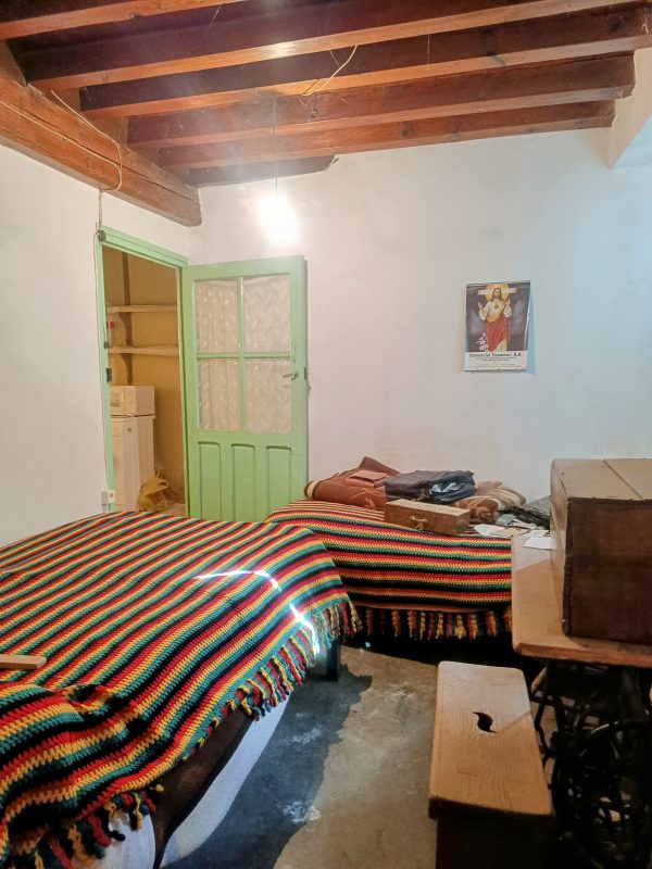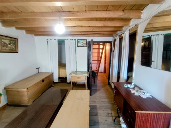 - Planta baja: Cuenta con baño, sala de estar, salón de paso, cocina con chimenea, despensa y un dormitorio.
