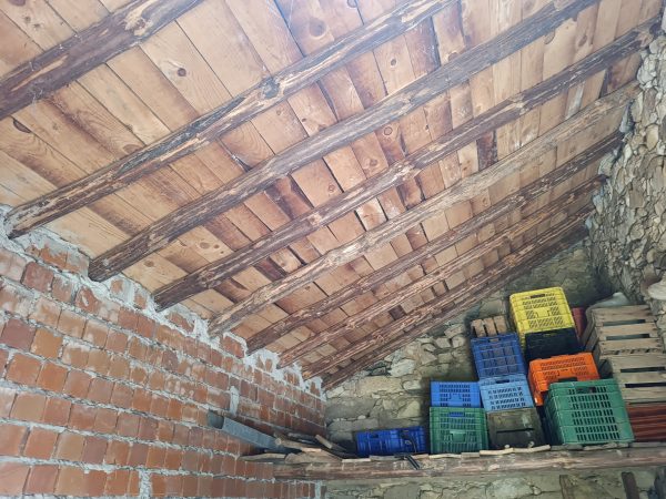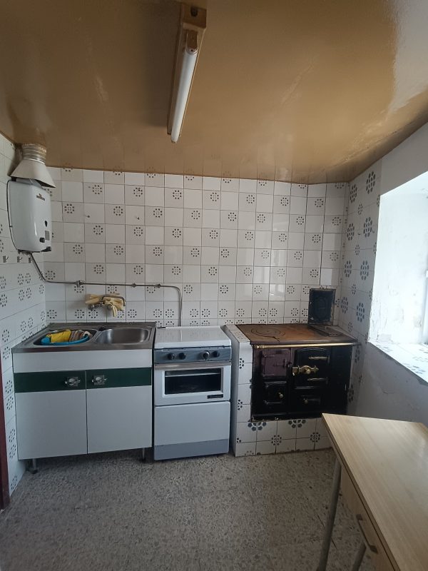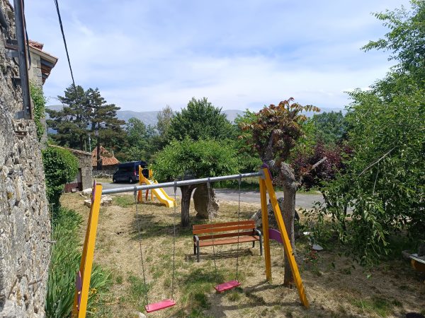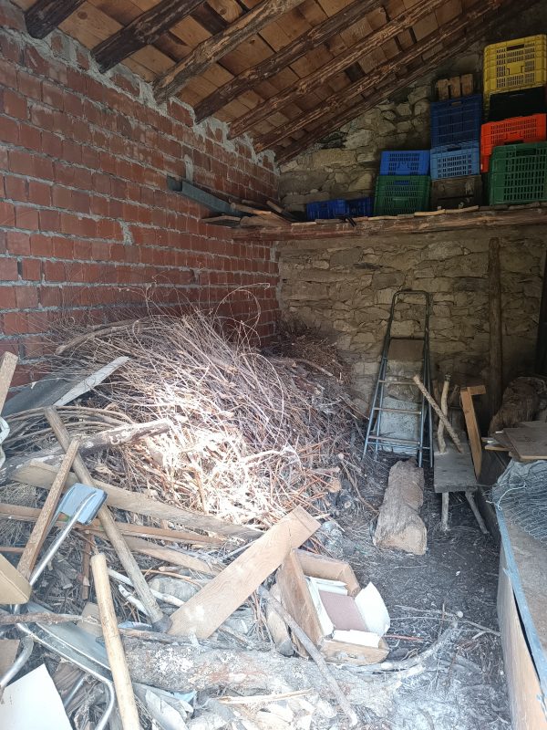 Además, cuenta con una leñera de unos 14 m2, localizada en la parte trasera de la vivienda. Se encuentra comunicada con la vivienda a través de un ventana. Este espacio tiene las paredes de piedra y el techo de madera. En a vivienda todas las estancias cuenta con luz del exterior. Tiene los cerramientos de aluminio y vidrio sencillo y los suelos de terrazo en la planta baja.