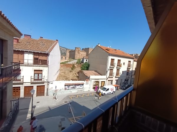 Se trata de un piso de 78 metros cuadrados construidos, que se distribuye en las siguientes estancias: recibidor, amplio salón con chimenea francesa y salida a una terraza con vistas al Castillo de Valdecorneja, cocina independiente, cuarto de baño con ducha y dos dormitorios (uno de ellos en suite con cuarto de baño completo con bañera).