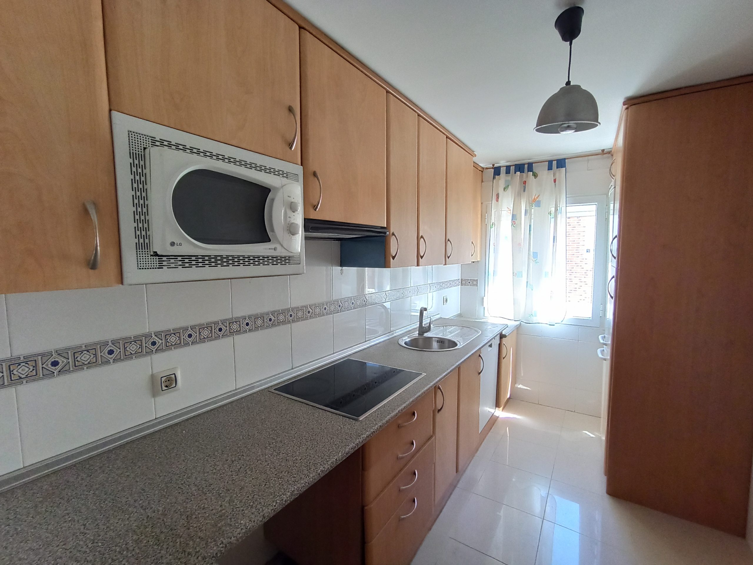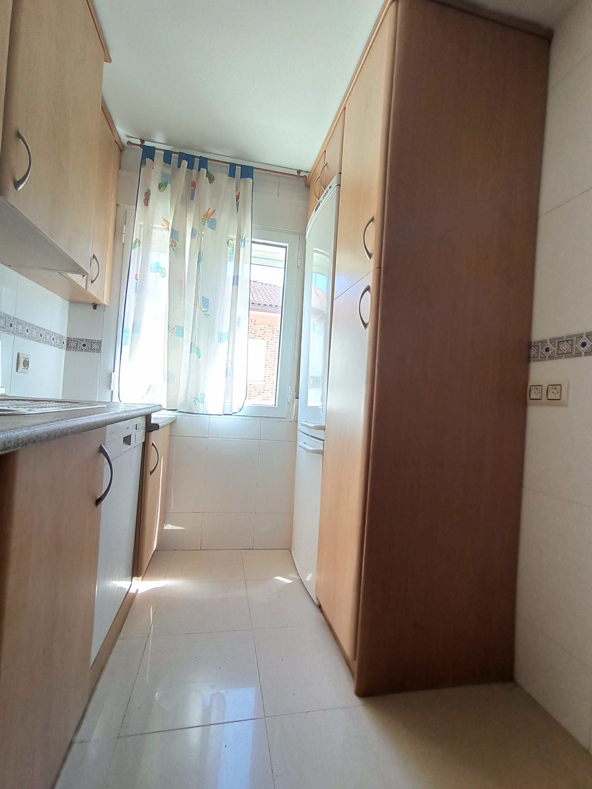 El piso tiene dos habitaciones con armarios empotrados, cocina independiente, un amplio salón y un baño completo con ducha. Además, en la entrada cuenta con un armario empotrado, para usarlo como espacio de almacenaje.