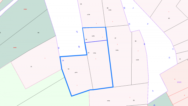 Se vende solar urbano con una superficie total de 124 m², formado por tres parcelas registradas (17 m², 54 m² y 53 m²).
