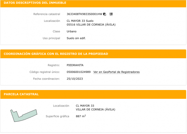En InmoServicios La Zagalla ponemos a la venta un magnífico solar urbano de unos 887 metros cuadrados en el municipio abulense de Villar de Corneja.