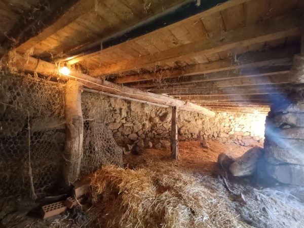 - Almacén 3: se trata de una antigua cuadra o casa de ganado de 90 metros cuadrados construidos. Tiene el suelo de piedra y tierra y las paredes de piedra. Cuenta con luz.