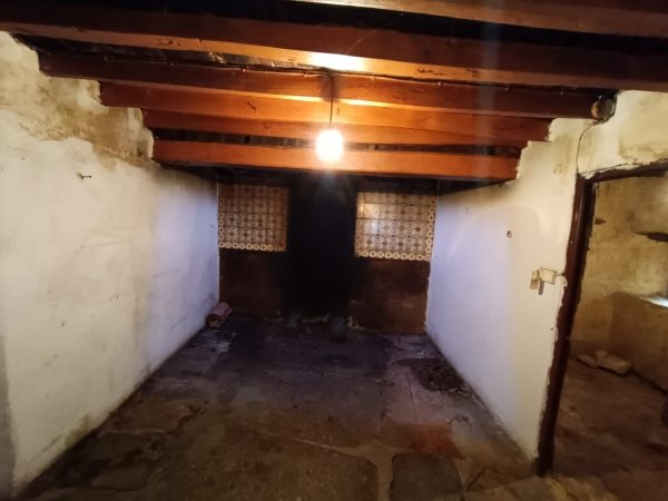 - Almacén 1, consta de una superficie construida de 100 metros cuadrados. Dispone de luz. Se distribuye en una planta baja y un sobrao. La planta baja ha sido usada como vivienda y se distribuye en una entrada, un comedor con 2 alcobas y una antigua cocina con chimenea y un almacén. Tiene el techo de madera y el suelo de piedra.