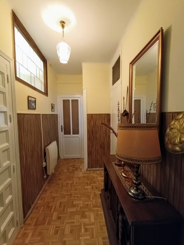 - El piso ubicado en la segunda planta ofrece una superficie total construida de 101 metros cuadrados y 80 metros cuadrados útiles. Al entrar, nos encontramos con un hall que da paso a las diferentes estancias. La cocina, funcional y con salida a un balcón, cuenta además con una práctica despensa. El salón-comedor, exterior y con vistas a la calle principal, se presenta como un espacio luminoso y agradable. La vivienda dispone de cuatro dormitorios, siendo el principal también exterior, mientras que los tres restantes son interiores. Un cuarto de baño completo con bañera da servicio a la vivienda. Cuenta con suelo de parquet en buen estado, ventanas de hierro y contraventanas de aluminio, lo que proporciona un aislamiento adicional. La calefacción es individual por radiadores eléctricos. En general, el estado actual del piso es bueno y se encuentra habitable.