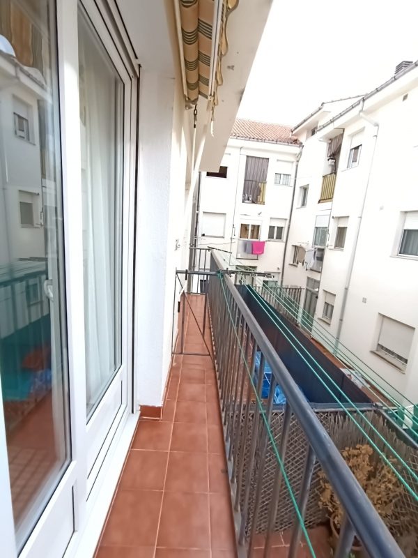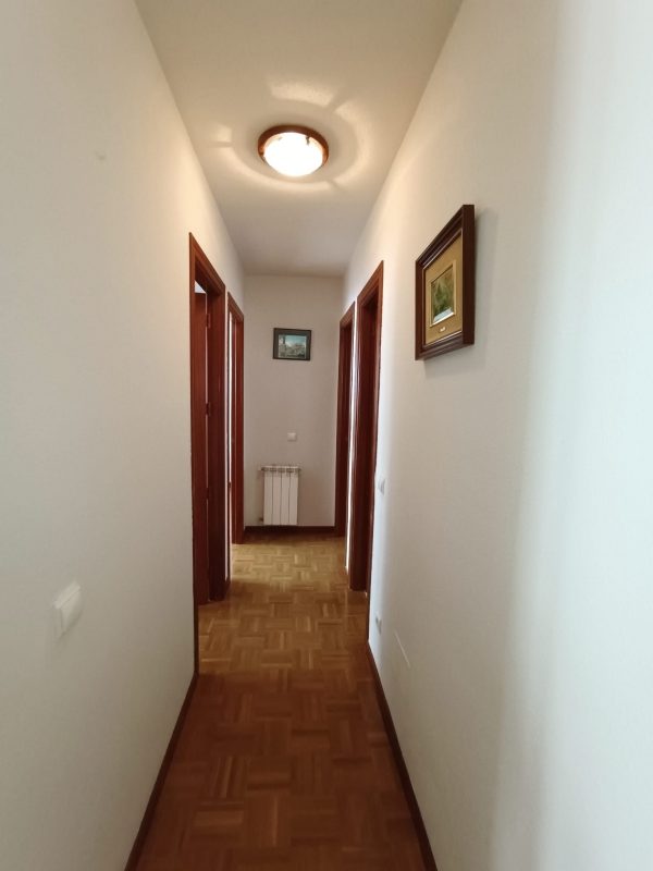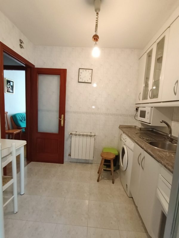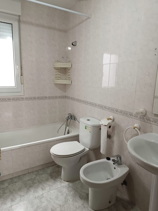 Se trata de un piso de unos 66 metros cuadrados divididos en: un recibidor, cocina independiente con salida a una terraza acristalada, en la que se ubica la caldera, salón-comedor con salida a un balcón, tres dormitorios con armarios empotrados y un cuarto de baño completo con bañera.