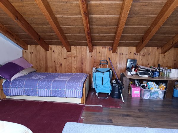 En la buhardilla, estaría el cuarto dormitorio. Se trata de un espacio amplio, acondicionado, con ventanas velux y suelos de tarima.