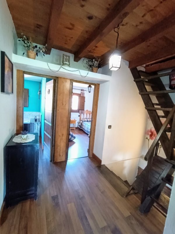 En la primera planta (39 m2), encontrarás tres dormitorios todos ellos espaciosos y luminosos y un cuarto de baño con ducha. La habitación principal cuenta con armario empotrado y salida a un balcón con preciosas vistas a la montaña. En la segunda habitación, hay dos camas y armario empotrado. En la tercera habitación, en la actualidad hay un jacuzzi de gran tamaño. En esta planta los suelos y techos son de madera.