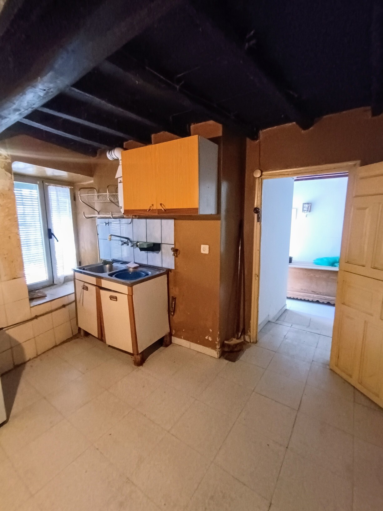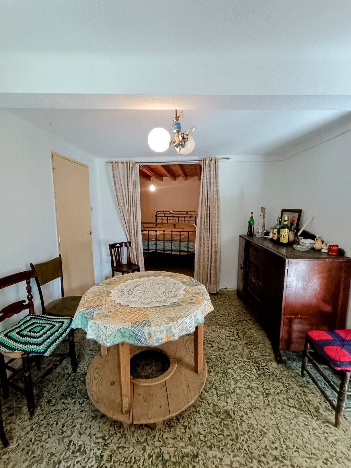 - Vivienda con fachada de piedra y de planta baja. Dispone de cocina con despensa, cuarto de baño completo, sala de estar con una alcoba, una habitación y el acceso al desván. El desván es un espacio totalmente diáfano, con la altura suficiente para habitarlo como parte de la vivienda.