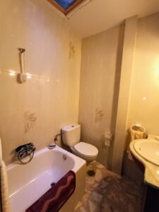🔹 Planta superior: despensa, baño completo con bañera, tres dormitorios y cocina con chimenea. En esta planta, los suelos son de gres y las ventanas cuentan con cerramientos de aluminio.