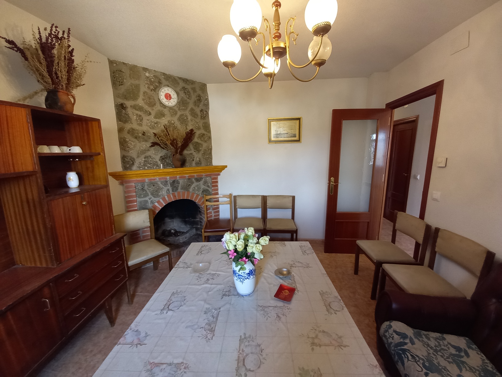 Amplio salón-comedor con chimenea, perfecto para crear un ambiente cálido en invierno.
