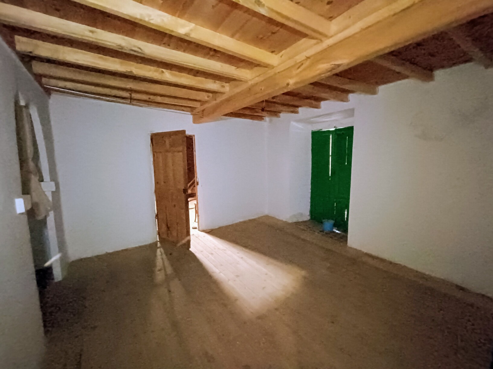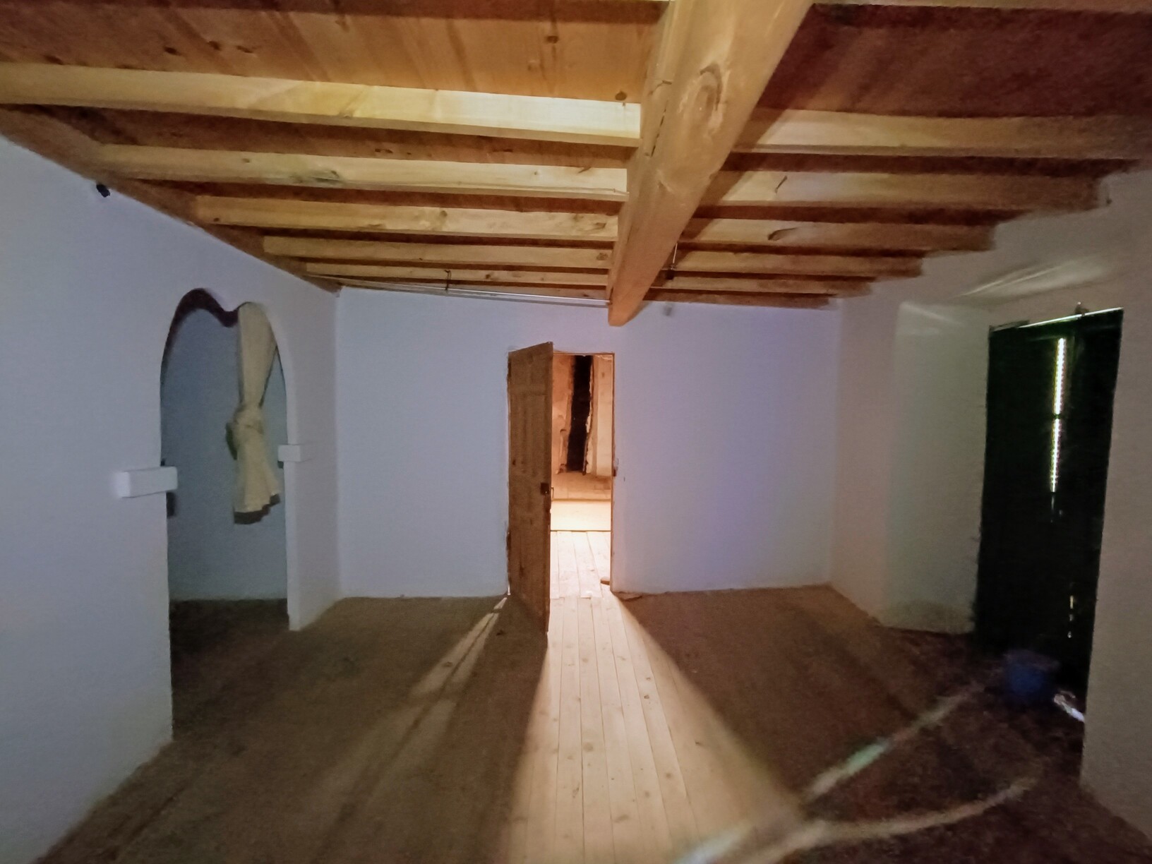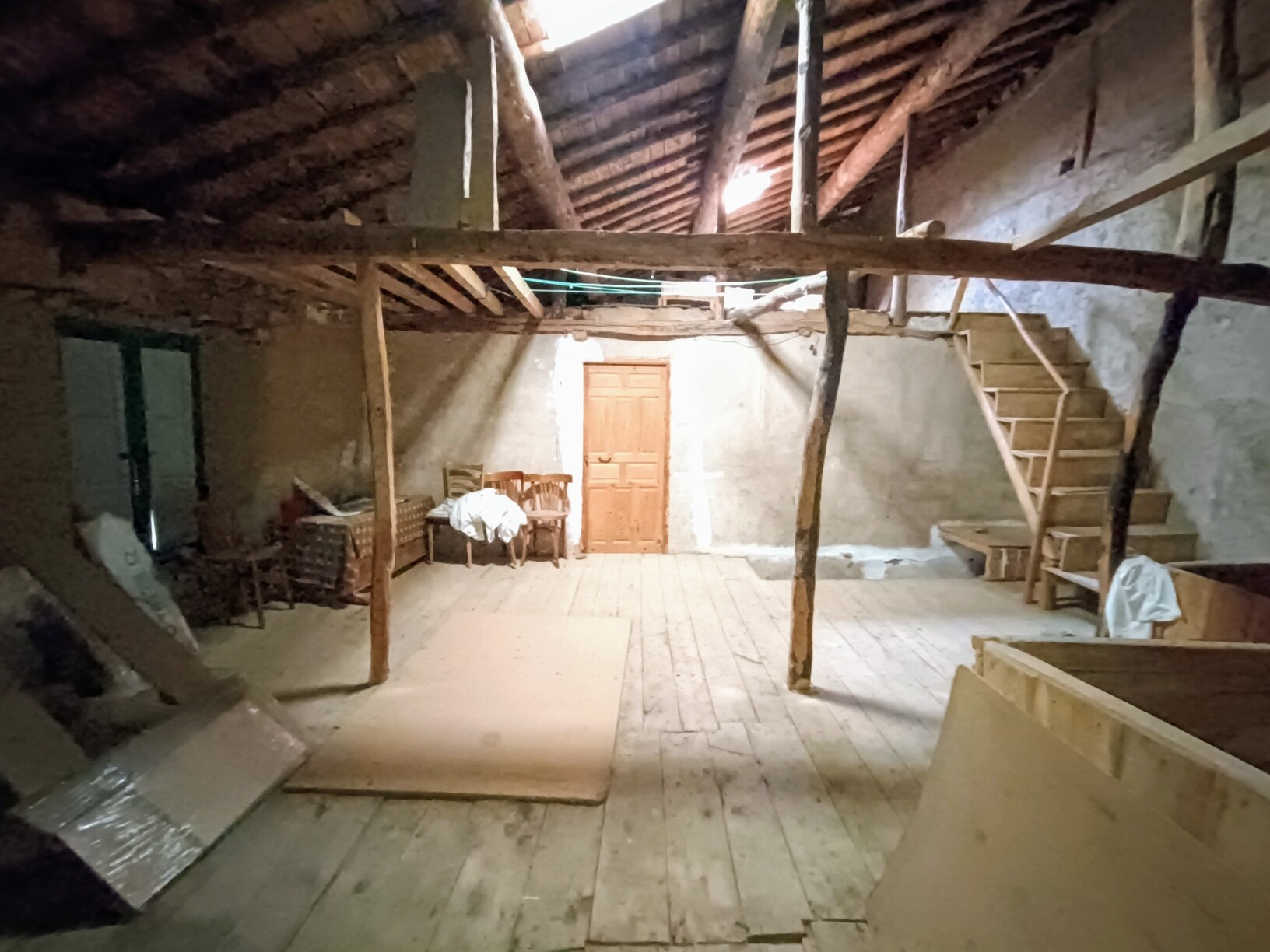 - Planta superior: espacio diáfano con sala, dos alcobas y acceso a un doble o desván. La vivienda conserva suelos de y cerramientos de madera, con luces a dos caras y una excelente ubicación que permite disfrutar de vistas abiertas a la sierra.