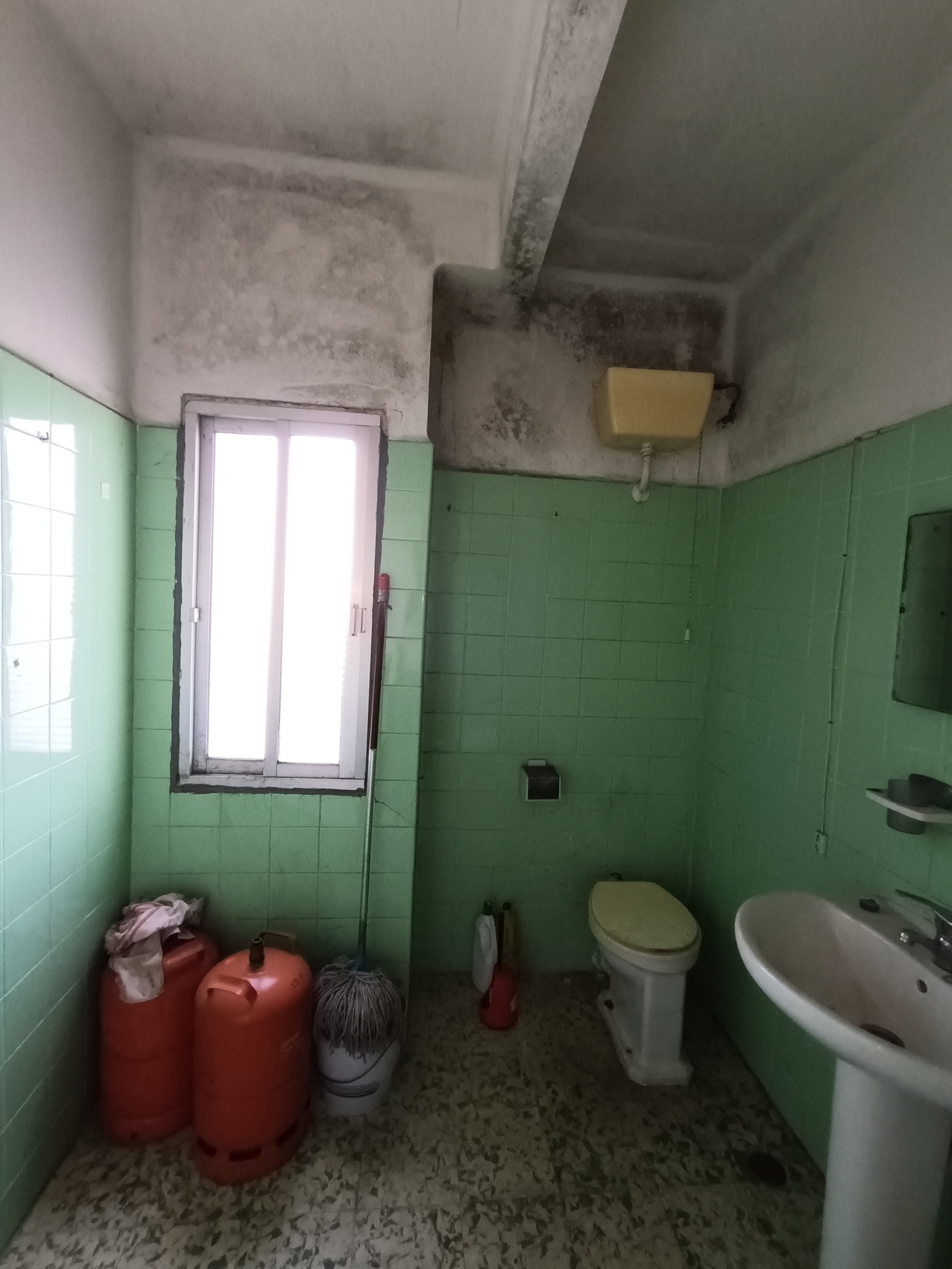 - La primera planta (138 m2), se destina a vivienda. Se trata de un piso distribuido en cocina con despensa, salón con salida a un balcón, 2 cuartos de baño y 5 dormitorios. Todas las estancias son exteriores.
