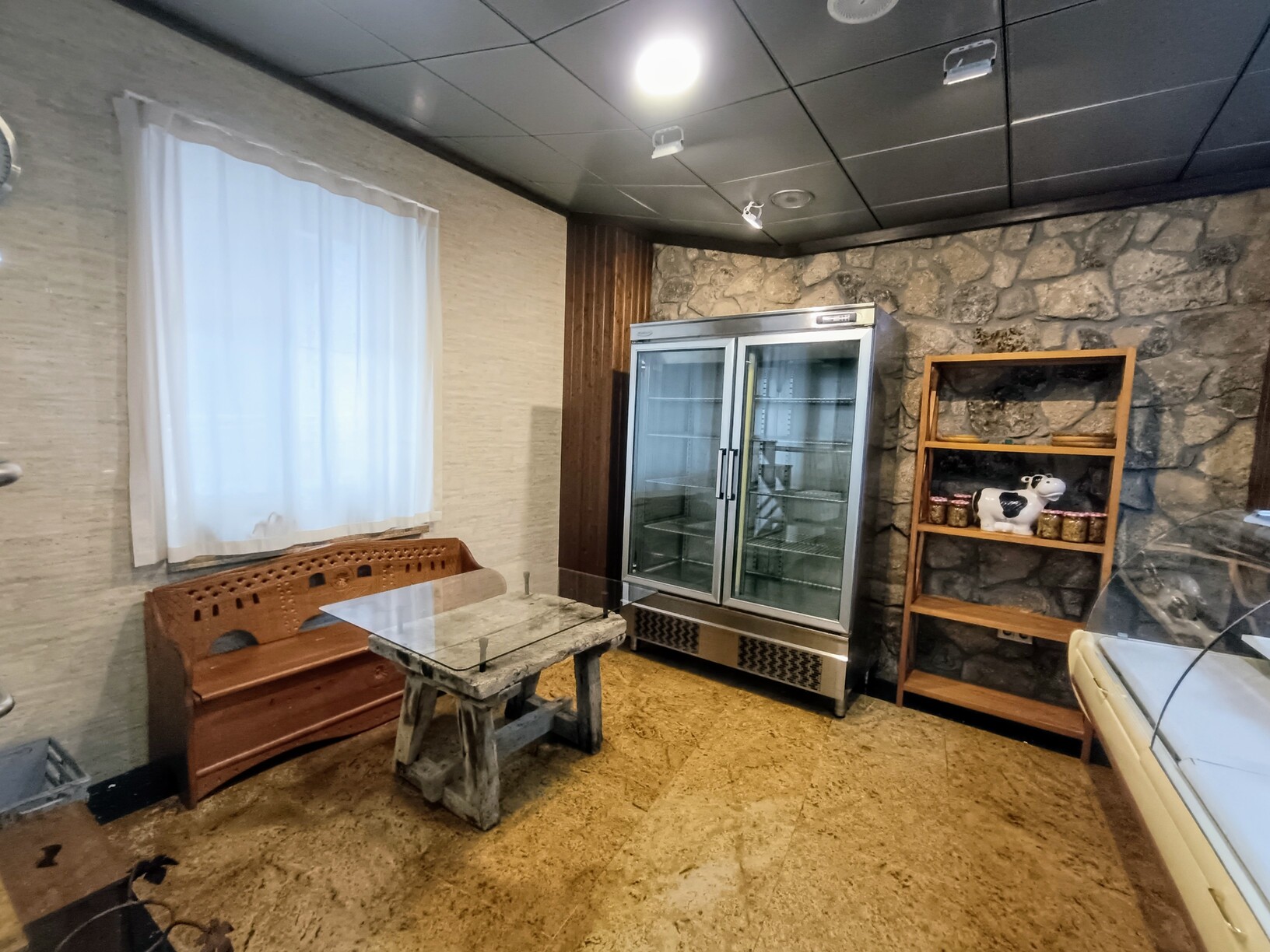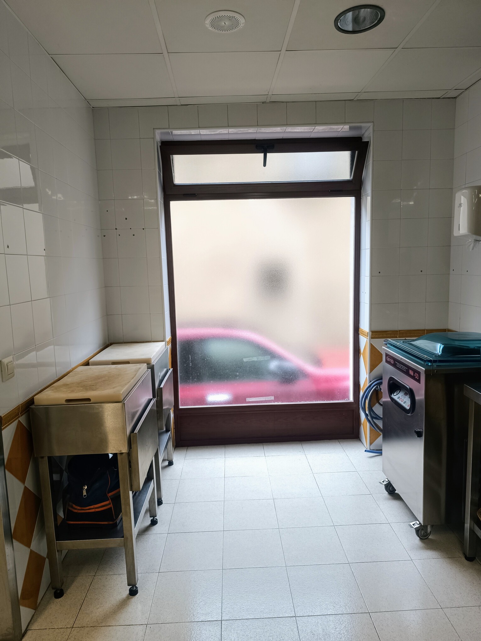 - Obrador equipado: máquina al vacío, picadora, cortafiambres, lavamanos con pedal, etc.