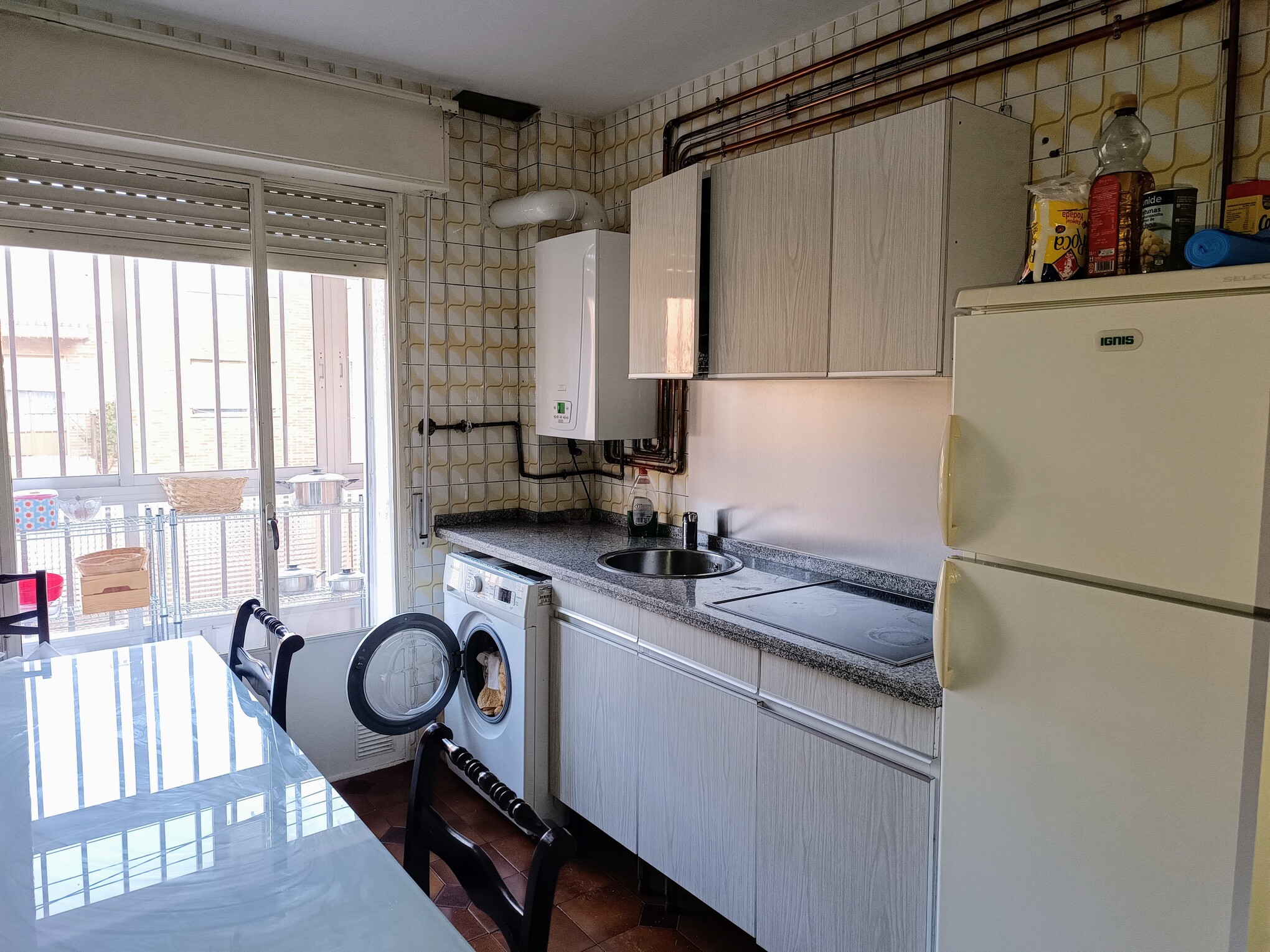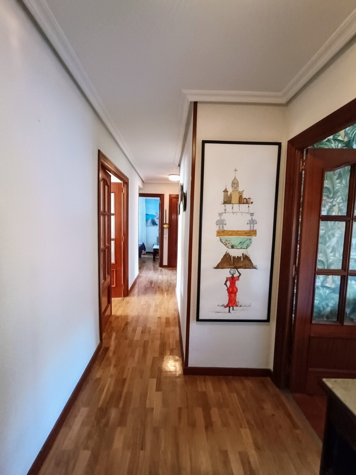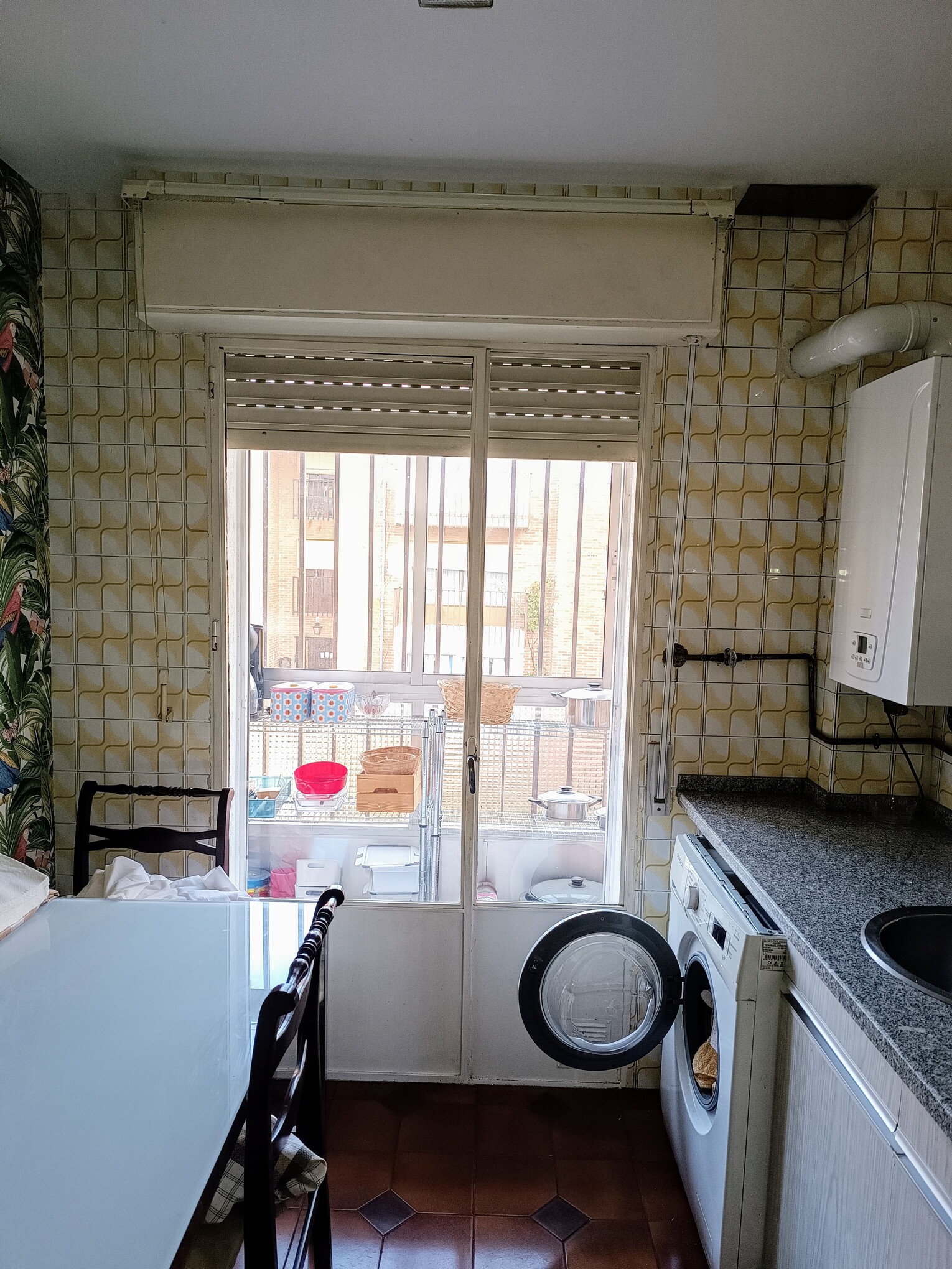 Se trata de un piso de unos 100 metros cuadrados construidos, ubicado en la primera planta de un edificio sin ascensor construido en el año 1977. Se distribuye en recibidor, salón-comedor con salida a una terraza abierta,  cocina independiente con salida a otra terraza pero en este caso está acristalada, cuarto de baño completo con bañera, aseo y 4 dormitorios. Además, dispone de un garaje independiente de 16 m2 y un trastero de 12 m2, ambos ubicados en el mismo edificio.